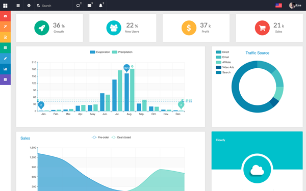 Cloud Admin v1.1.3 is an intuitive, feature-packed, beautiful & well-documented dashboard admin+frontend theme built on the top of latest Bootstrap 3.